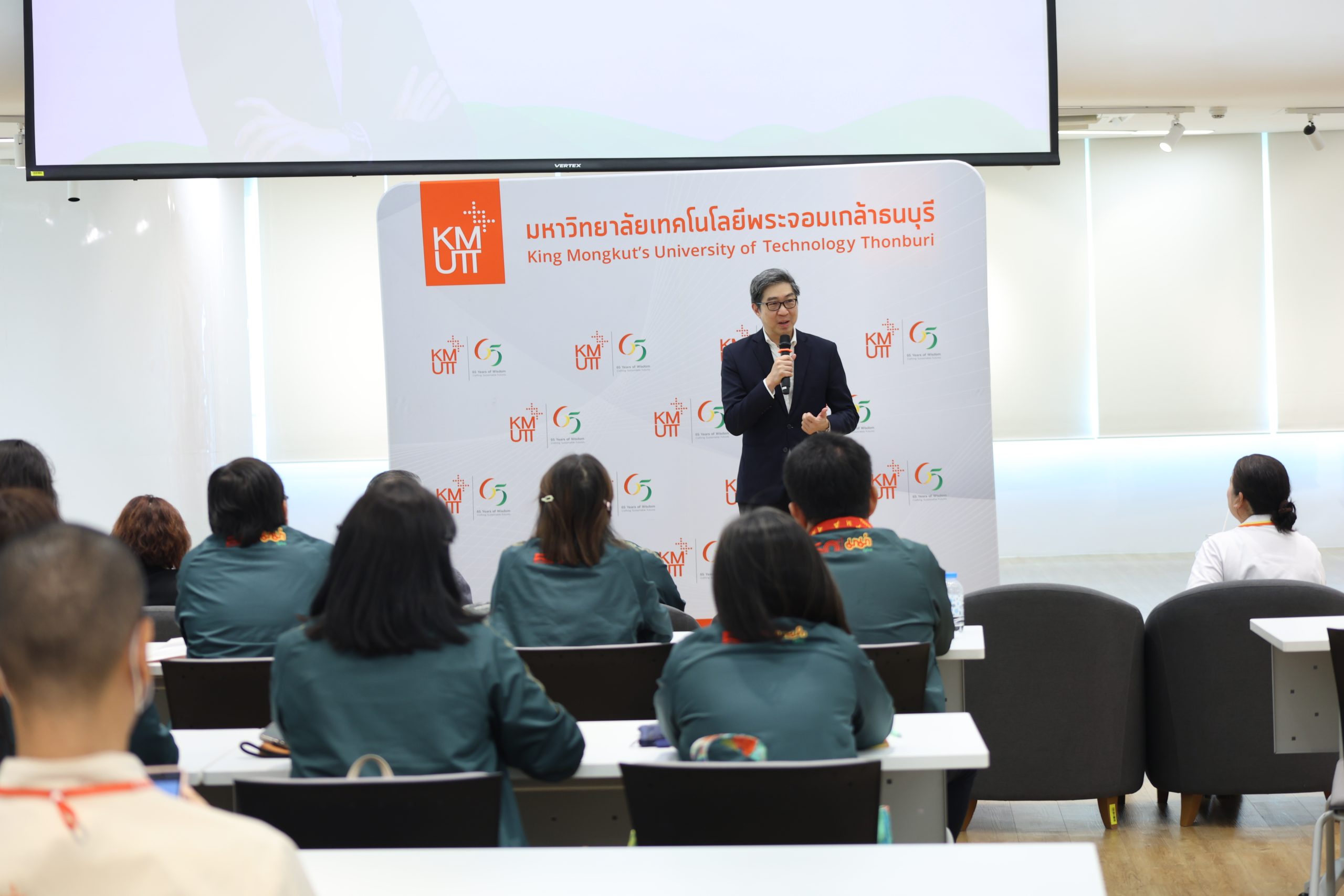 ศูนย์การศึกษาต่อเนื่อง สำนักวิจัยและบริการวิทยาศาสตร์และเทคโนโลยี มหาวิทยาลัยเทคโนโลยีพระจอมเกล้าธนบุรี (มจธ.) ได้จัดพิธีปฐมนิเทศและเปิดหลักสูตร “การพัฒนาผู้นำรุ่นใหม่สู่การบริหารกิจการอย่างยั่งยืนในโลกยุคดิจิทัล (Next-Gen Leadership for Sustainable Digital Transformation)” ณ ห้องพินิจวิทัศน์ (V Space) ชั้น 14 อาคารการเรียนรู้พหุวิทยาการ (LX) มจธ. บางมด