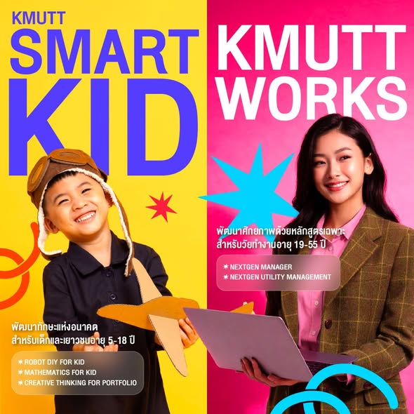 – KMUTT Smart Kid หลักสูตรเพื่อเด็กและเยาวชนอายุ 5-18 ปี ได้พัฒนาทักษะแห่งอนาคตที่สำคัญ